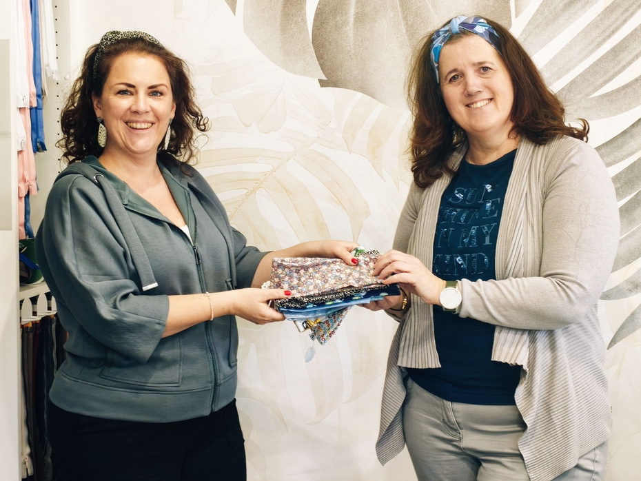 Elisabeth Rettenbacher, EB-Haus Austria und Anneliese Henggi, anNähliese, bei der Übergabe der Stirnbänder © Privat